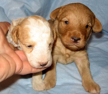 This is Rusty. He is a Mini Labradoodle and weights about 18lbs. He has been tested for hips: OFA-good, clear for PRA and normal heart.