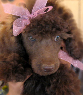 This is the mom of Shortie: Chocolate Pie: she is a standard poodle. She is now 5 years old and I have had here since she was 4 months old.